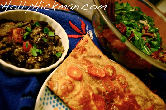 And here is the result of my purchases–homemade pizza that we ate topped with an arugula salad, plus an eggplant/tomato riff on baba ganoush. Dessert? Gaby’s ice cream, of course. Darya, you must come to South Florida; they make the magic happen here. And I’m not talking about Mickey.