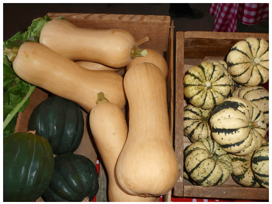 - Several two-tone squash from Leo Big D Farms