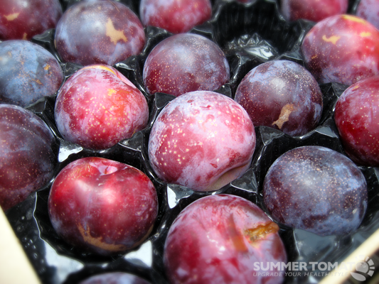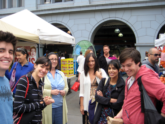 SF has officially migrated to summer. The stone fruits (those with pits like cherries, plums, peaches, etc.) are out of control delicious right now. At the sampling dishes we all had the same experience: 1) Gently choose fruit piece with tongs, 2) place fruit in mouth, 3) moment of silence, 4) “Oh my god. I have to buy those.” Today it was the yummy rosa pluots that had us all hypnotized.