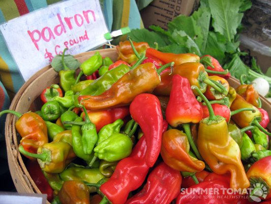 Every week I see more varieties of peppers, which makes me ecstatic. Peppers might be my favorite summer treat. These padrons are a little ripe for my taste (they’re best when dark green), but they sure look pretty.